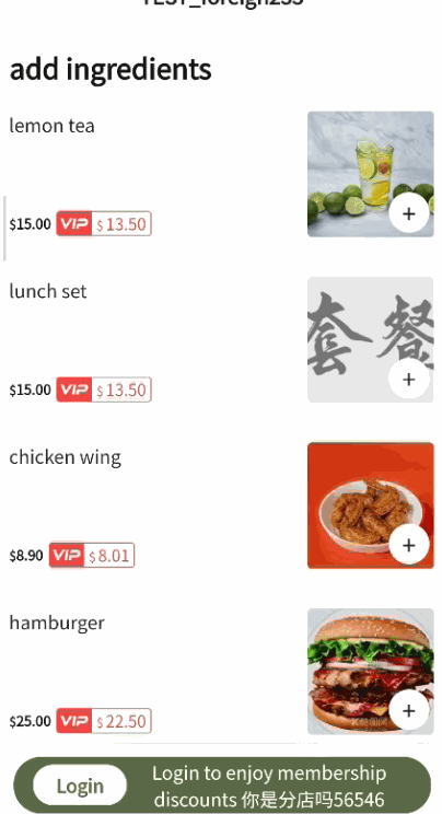 ## Results show 效果展示 After choosing the quantity and flavor of chicken wings, you can decide whether you need a set meal or not. After choosing different packages, different package contents will be displayed 选择完鸡翅的数量和口味后,可以选择是否需要套餐。选择不同的套餐后,展示不同的套餐内容   ## Background operation steps 后台操作步骤 ### 一、Add category 添加分类 **Set all the categories that need to be displayed 设置需要展示的所有分类** #### 1. Click on Edit 点击‘编辑’  #### 2. Select HelpCategories 选择‘使用分类’  #### 3. Click on +Add 点击‘添加加料’  #### 4. Click on Please enter a category name 点击‘请输入类别名称’  #### 5. Click on ‘+’Cross-sell Products 点击“+” 关联商品  #### 6. Select Products 选择商品  #### 7. Click on Confirm Cross-sell Products 点击‘确认’关联商品  #### 8. Select Method of limiting quantity 选择限制数量的方式  #### 9. Type limited quantity 输入限制数量 Repeat the steps to associate all the goods of this type 重复步骤关联该类型所有商品  #### 10. Select Number of kind of add-ons 选择‘加料种类限制’  #### 11. Click on Select the category limit quantity 输入选择种类上限 Repeat the steps to set all categories(The package can be left unselected. Just enter 0 in min) 重复步骤设置全部分类(套餐可以不选择,在min中输入0)  ### 二、Set the display categories that meet the conditions 设置满足条件展示分类 #### 1. Open to display categories when conditions are met 打开满足条件时显示分类  #### 2. Click on Select the category that needs to be associated 选择关联分类  #### 3. Uncheck Goods that trigger conditions 选择关联分类的商品 The cash register display will only show the associated category if the goods have been selected 收银台展示需要选择了关联分类的商品,才会展示该分类