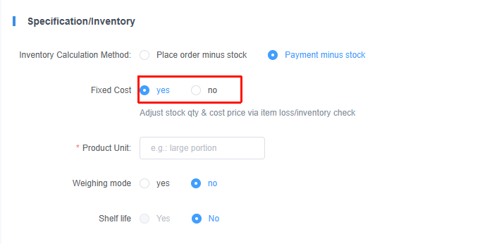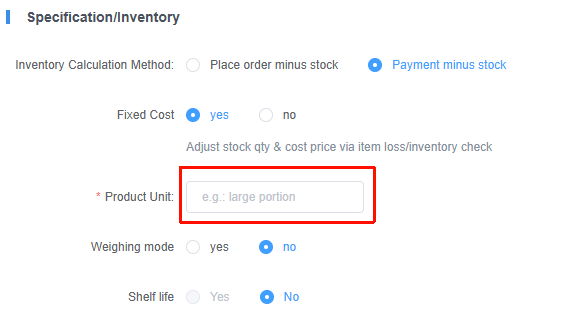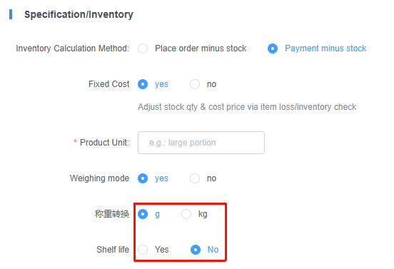 **The store needs to add new products for sale 门店需要添加新的商品,进行售卖** ## 操作入口 Menu-->ltem-->Inventory management-->On Sheif-->Add Product 商品-->店内商品-->商品管理-->上架中-->添加商品  ## 操作流程 ### 1.设置商品名称 设置商品中文、英文、韩文的名称  ### 2.选择分类 选择商品归属的分类,方便后续管理调整  ### 3.添加商品图片 点击添加图片,并进行选择(选择的图片,在收银台/h5/桌码中显示的商品展示图)  ### 4.选择商品是否进入厨房 进入厨房,只在KDS中显示,如果门店没有开启KDS,可以忽略此步骤  ### 5.选择库存计算方式 可以根据门店的运营模式,选择减少库存的计算方式(==不管哪种模式,建议选择下单减库存==)  ### 6.选择固定成本 是否根据商品损耗/盘点时,增加或者减少库存数量,改变成本价  ### 7.填写商品单位 输入商品的计量单位  ### 8.是否称重模式 #### ①非称重模式 商品不需要称重,直接售卖  #### ②称重商品 商品需要根据称重来定义价格,还需要选择‘称重单位’和‘保质期’  ### 9.设置商品规格 设置商品是单规格还是多规格,并填写商品的价格、包装费、库存、最低点餐数量等 单商品:适用于商品无需选择规格, 多规格:适用于相同商品有多种规格可选择(==建议使用单规格,通过关联商品加料进行实现商品多规格==)  ### 9.商品加料设置 设置商品加料[商品加料设置](https://wiki.amfuture.ai/doc/125/)  ### 10.商品消费积分设置 设置该商品是否赠送消费积分,以及该商品是否可以使用消费积分兑换  ### 11.会员折扣设置 该商品是否参与会员的折扣,如果开启设置折扣的方式  ### 12.其他设置 设置商品的状态、商品排序、限购数量、展示终端、商品是否开启备注  ### 13.发布商品 再次检查商品配置,是否有误,确定后点击‘发布’按钮