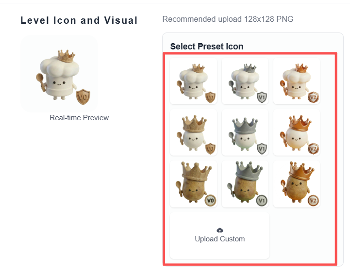 **此篇文档描述新增会员等级的操作步骤** ## 操作流程 ### 1.修改默认等级 在创建时都会有一个名为‘新用户’的默认等级,我们需要将他的等级进行修改  ### 2.选择等级图标 上传/选择不同等级对应的图标(==上传底部为透明,且具有3D效果的图标观感会更好哦~==)  ### 3.设置名称 设置对应等级的名称  ### 4.设置成长值 设置对应等级所需要的成长值(默认等级所需成长值为0,无法调整)  ### 5.设置折扣权益 设置对应等级享受的购买商品的折扣  ### 6.设置消费积分获取倍数 设置对应等级获取消费积分时的倍数(==如果不需要翻倍则填写‘1’==)  ### 7.设置等级位置 设置对应等级的排序位置  ### 8.设置自动升级 设置用户成长值满足后是否自动升级  ### 9.设置消费于成长值比例 设置对应成长值与消费金额的比例  ### 10.设置衰减规则 设置该等级进行衰减时,减少的成长值(减少固定/账户内百分比)  ### 13.设置等级福利 具体教程[设置等级福利](https://wiki.amfuture.ai/doc/240/) ### 12.保存设置 二次检查设置内容后进行保存设置