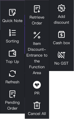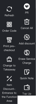 > By toggling the switches in these major functional blocks, merchants can decide which operation buttons and high-risk verification steps are presented to the staff, ensuring the POS interface matches the specific operational needs of the outlet. <br> 通过切换这些主要功能模块的开关,商户可以决定哪些操作按钮和高风险验证步骤会呈现给员工,从而确保 POS 界面完全符合门店的具体业务需求。 #### Navigation Bar 导航栏 * **POS Location / POS 位置**: This section controls the primary entry points of the POS system, typically located on the far-left or navigation bar of the terminal. <br> 此区域控制 POS 系统的初级功能入口,通常位于终端界面的最左侧导航栏。 * **POS Effect / 前端效果**: Toggling these settings determines which core business modules (such as Dine-in, Takeaway, KDS, Reports, or Inventory) are accessible to the cashier. If a module is disabled here, it will be completely hidden from the POS main navigation, simplifying the interface for staff who only perform specific roles. <br> 切换这些设置将决定收银员可以访问哪些核心业务模块(如堂食、打包、KDS、报表或库存)。如果在处禁用某个模块,它将从 POS 主导航中彻底隐藏,从而为仅执行特定角色的员工简化界面。  #### Operation Area Function: Takeaway 操作区域功能:打包 * **POS Location / POS 位置**: This section manages the functional buttons that appear specifically within the "Takeaway" (Quick Service) interface on the POS terminal. <br> 此区域管理专门出现在 POS 终端“打包”(快餐/外带)界面中的功能按钮。 * **POS Effect / 前端效果**: Toggling these settings controls the tools available for fast-paced takeout transactions. For example, enabling "Weighing" allows for bulk items, while "Discount" and "Quick Note" buttons appear directly in the ordering flow to speed up service for walk-in customers. <br> 切换这些设置可以控制外带交易中可用的工具。例如,启用“称重”可处理散装商品,而“折扣”和“快速备注”按钮将直接出现在点餐流程中,从而加快对到店顾客的服务速度。  #### Operation Area Function: Dine-in 操作区域功能:堂食 * **POS Location / POS 位置**: This section manages the functional buttons that appear specifically within the "Dine-in" (Table Service) interface on the POS terminal. <br> 此区域管理专门出现在 POS 终端“堂食”(桌台服务)界面中的功能按钮。 * **POS Effect / 前端效果**: These settings govern table-specific operations. When enabled, features such as "Transfer Table", "Merge/Split Tables", and "Order Code" (QR ordering) become available, allowing cashiers to manage the complex needs of seated customers and ensuring efficient floor management. <br> 这些设置管辖特定于桌台的操作。启用后,“转台”、“合单/拆单”和“点餐码”(扫码点餐)等功能将变得可用,允许收银员管理在位顾客的复杂需求并确保高效的楼面管理。  #### Operation Area Function: Orders 操作区域功能:订单 * **POS Location / POS 位置**: This section manages the functional buttons found within the "Orders" (History/Management) interface on the POS terminal. <br> 此区域管理位于 POS 终端“订单”(历史/管理)界面中的功能按钮。 * **POS Effect / 前端效果**: These toggles determine the after-sales and administrative tools available for processed or pending orders. Enabling features here allows staff to perform critical tasks like "Refund", "Modify Payment Method", "Re-print Kitchen Order", or "Cancel Order" directly from the order history list. <br> 这些开关决定了针对已处理或待处理订单的售后及管理工具。在此处启用功能允许员工直接从订单历史列表中执行关键任务,如“退款”、“修改支付方式”、“再次厨打”或“取消订单”。  #### Order / Payment 下单与支付 * **POS Location / POS 位置**: This section focuses on the critical logic gates and security intercepts during the final stages of a transaction—ordering and checkout. <br> 此区域专注于交易最后阶段(下单和结账)的关键逻辑门控和安全拦截。 * **POS Effect / 前端效果**: Settings here control the workflow of the checkout screen. This includes mandatory secondary confirmations for cash payments, automatic rounding rules for the total bill, or requiring a PIN code verification for specific high-risk actions. It ensures that the most sensitive parts of the sales process are governed by the merchant's predefined security and financial policies. <br> 此处的设置控制结账界面的工作流。这包括现金支付的强制二次确认、账单总额的自动抹零规则,或针对特定高风险操作要求 PIN 码验证。它确保销售流程中最敏感的部分受到商户预定义的安全和财务策略的管辖。 #### More 更多 * **POS Location / POS 位置**: This section controls the administrative and utility tools found within the "More" or "System" menu, often accessed via a collapsed menu icon. <br> 此区域控制在“更多”或“系统”菜单中找到的管理和实用工具,通常通过折叠菜单图标访问。 * **POS Effect / 前端效果**: Features enabled here populate the auxiliary menu with essential but less frequent tasks, such as manual cash drawer opening, shift settlements (Shift Summary), hardware configuration (Printer/Display settings), and sales reports. It allows managers to access system-level adjustments without cluttering the main transaction screen. <br> 此处启用的功能将在辅助菜单中填充必要但频率较低的任务,如手动打开钱箱、钱箱清算(班次汇总)、硬件配置(打印机/显示器设置)和销售报表。它允许管理人员进行系统级调整,而不会使主交易界面显得拥挤。  --- ### 2. Frequently Asked Questions (FAQ) 常