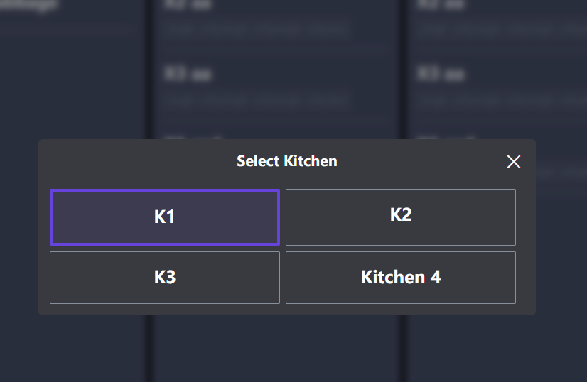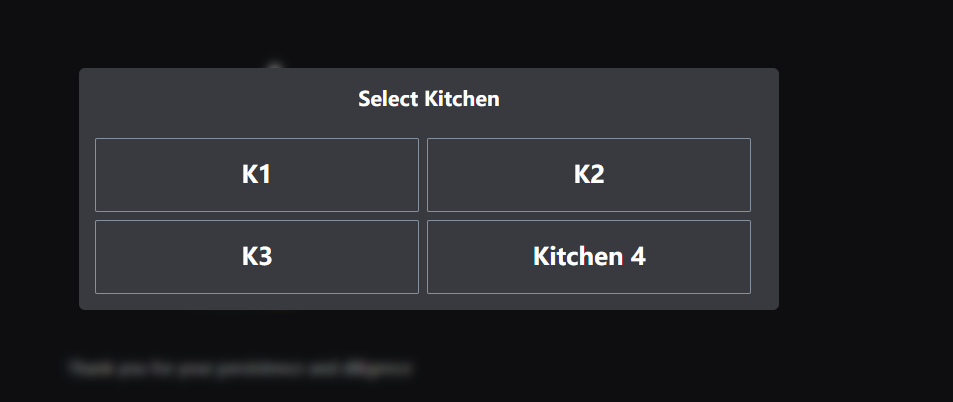 **If there are multiple kitchens, you need to check the items that need to be made in the current kitchen (assignment content can be set in the background) 如果有多个厨房,需要查看当前厨房需要制作的商品(分配内容可在后台设置)** ## Operation process 操作流程 ### 1.When entering 'KDS' 进入‘KDS’时 If you have multiple kitchens open when entering KDS, you need to select the kitchen you want to enter 进入KDS时如果开启了多个厨房,需要进行选择进入的厨房  #### 2.Switch kitchens 切换厨房 After entering the kitchen, you need to switch to another kitchen, click the 'Kitchen Name' button, and select the kitchen to enter 进入厨房后,需要切换成其他厨房,点击‘厨房名称’按钮,进行选择厨房进入
